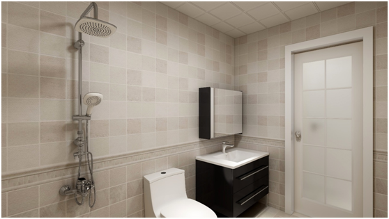 此衛(wèi)生間進門右手邊為浴室柜,鏡子背靠東側,鏡子沒有直對門和坐便,因為從風水上講,馬桶為污穢之物,不能去“照鏡子”。雖然衛(wèi)生間空間比較小,但是整個衛(wèi)生間的功能并沒有減少,浴室柜的簡單儲物,洗衣機上方的空間利用,單獨的淋浴設計做到了干濕分區(qū),使得衛(wèi)生間充分的利用的空間。墻面采用300*300的小磚鋪貼,使得整體墻面比較豐富,不是那么單一。