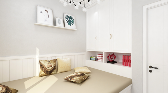 3、 此戶型次臥室平米比較小,所以后期再規(guī)劃設計上面可以采用整體全屋定制形式