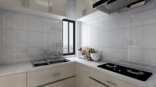 現(xiàn)代簡約廚房采用的是白色的亮面磚,櫥柜門板則選用亮面烤漆門板,整體增加廚房的采光,看起來干凈利索,整潔,雖然第一眼不會給人很驚艷的感覺,但是越看越耐看,墻壁上的柜子使整個廚房干凈整潔,在這樣的廚房里面烹飪,給人一種很安靜的感覺,做出來的飯菜也一樣美味,可口。