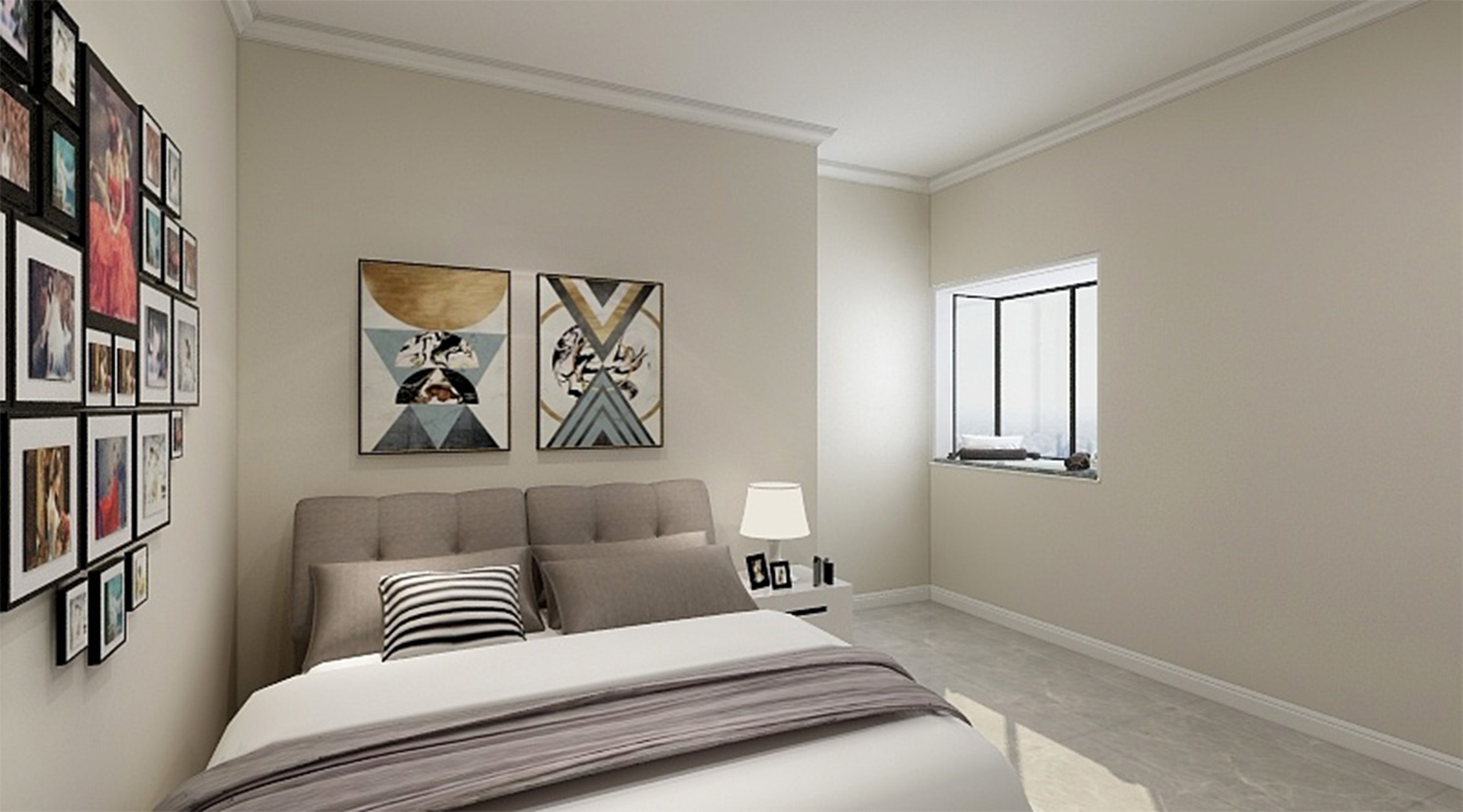 2:主臥室的墻面顏色和家具顏色也是以淺色為主,由于空間不算小,在考慮多個方案后,感覺還是把衣柜放到了床對面的那面墻,這樣的話不僅空間布局合理,而且滿足的功能更多,能增加更多的儲物空間。