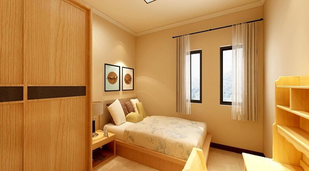 次臥室是女兒房,考慮到小姑娘一天天的在長大,所以并沒有給她布置成特別明顯特征的兒童房,也沒有選擇公主粉,更多的是考慮其休息、儲物和學習的功能性。1.2的單人床一個人睡覺是非常舒服的,旁邊放一個床頭柜也足夠用了,考慮到空間的限制,書桌智能放到床尾的位置,因為床頭柜的旁邊要放一個1.5米的衣柜。