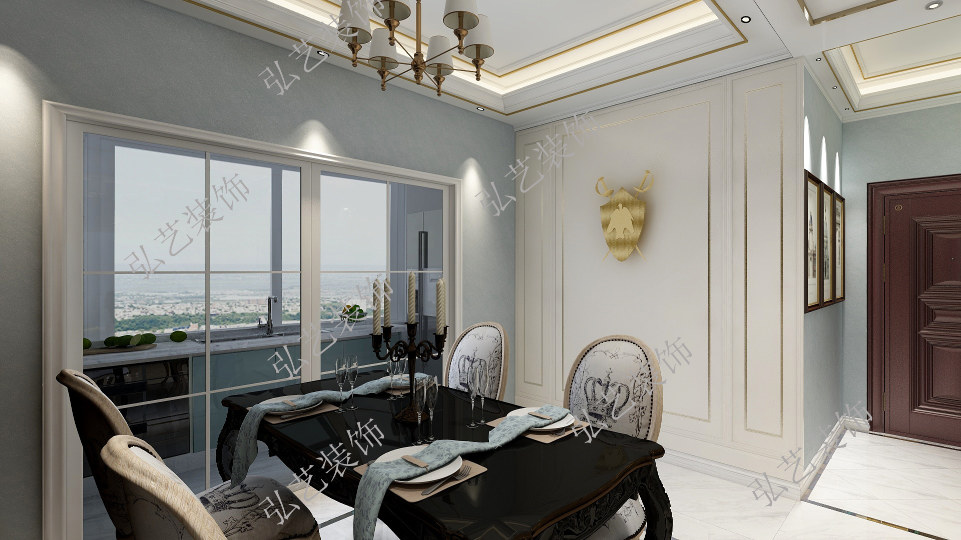 本案中運(yùn)用簡歐主義的空間語言,通過溫婉典雅、簡約輕奢的現(xiàn)代設(shè)計(jì)手法與元素運(yùn)用,呈現(xiàn)出當(dāng)代語境下融合的審美情趣,在塑造了低調(diào)奢華的家居環(huán)境下,將中西元素完美混搭于空間中,達(dá)到奢而不華、簡而不凡的理念。