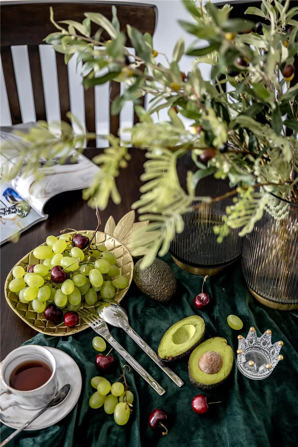 餐桌椅延續(xù)經(jīng)典美式的深棕色,氣質(zhì)滿分又不失品味的軟裝搭配,讓生活更有儀式感。