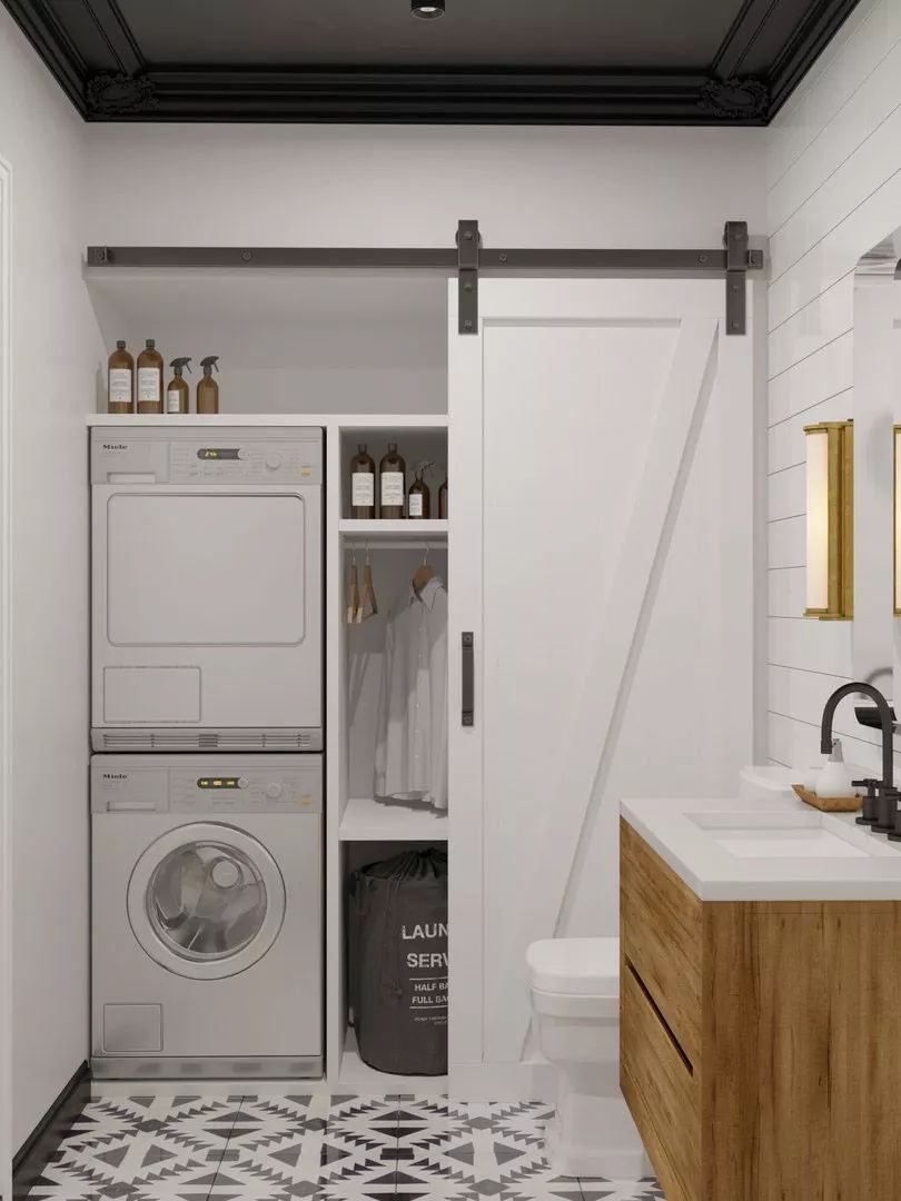 將洗衣機(jī)的收納柜,裝上折疊門或推拉門也可以讓洗衣機(jī)壽命更長~