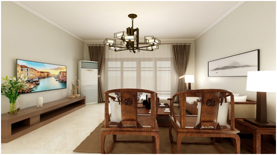 業(yè)主在開(kāi)始咨詢裝修的時(shí)候,就想做中式或新中式的風(fēng)格,后期家具配飾呢也是在朝著這個(gè)方向努力。在宜居的同時(shí)又不喜歡太復(fù)雜的造型,同時(shí)電視墻又比較短。所以電視墻并沒(méi)有做什么修飾,其實(shí)電視往墻上一掛也沒(méi)有多少空間了,沙發(fā)背景配以一副新中式的裝飾畫(huà),還是比較有意境的。