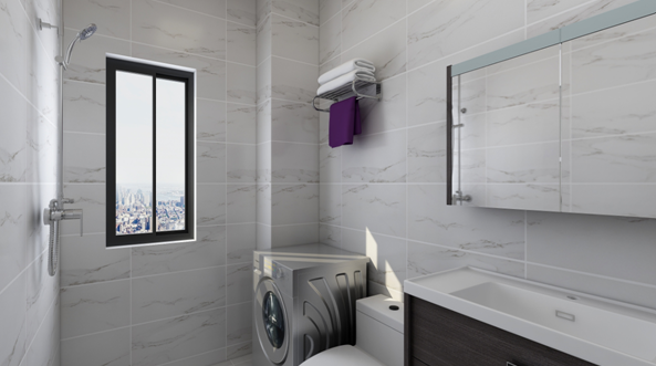 很多時候,由于房間戶型設(shè)計的局限性,衛(wèi)生間的面積比較狹小,但科學合理的設(shè)計,可以讓衛(wèi)生間看起來明亮寬敞且使用,雖然衛(wèi)生間狹小但是不要忽略衛(wèi)生間這個小地方,他關(guān)系著全家人的健康以及生活質(zhì)量,衛(wèi)生間設(shè)計要注意防水,防潮,通風,美觀和易清潔同樣重要,衛(wèi)生間里面采用懸空式浴室柜,這樣比較好清潔大理,馬桶后面加上花片點綴,為整個衛(wèi)生間增添了活力。