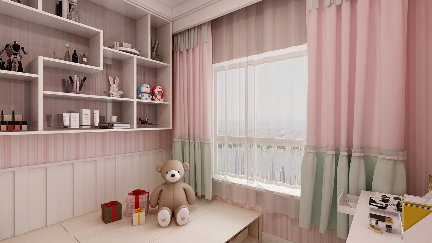 這個臥室做的榻榻米,考慮到女孩兒化妝品和衣服之類的東西比較多,所以選擇榻榻米可以增加儲物空間,通過我們交流,我就感覺每個女孩都有一個公主夢,加上他女朋友白白凈凈,穿著粉色的上衣,我就感覺來一個粉色調(diào)的公主房,突出甜美的感覺。搭配也稍稍的采用了一些卡通元素,但不是那種很幼稚的卡通,靠窗戶的地上還加了一個圓形小地毯,提供娛樂和休閑。