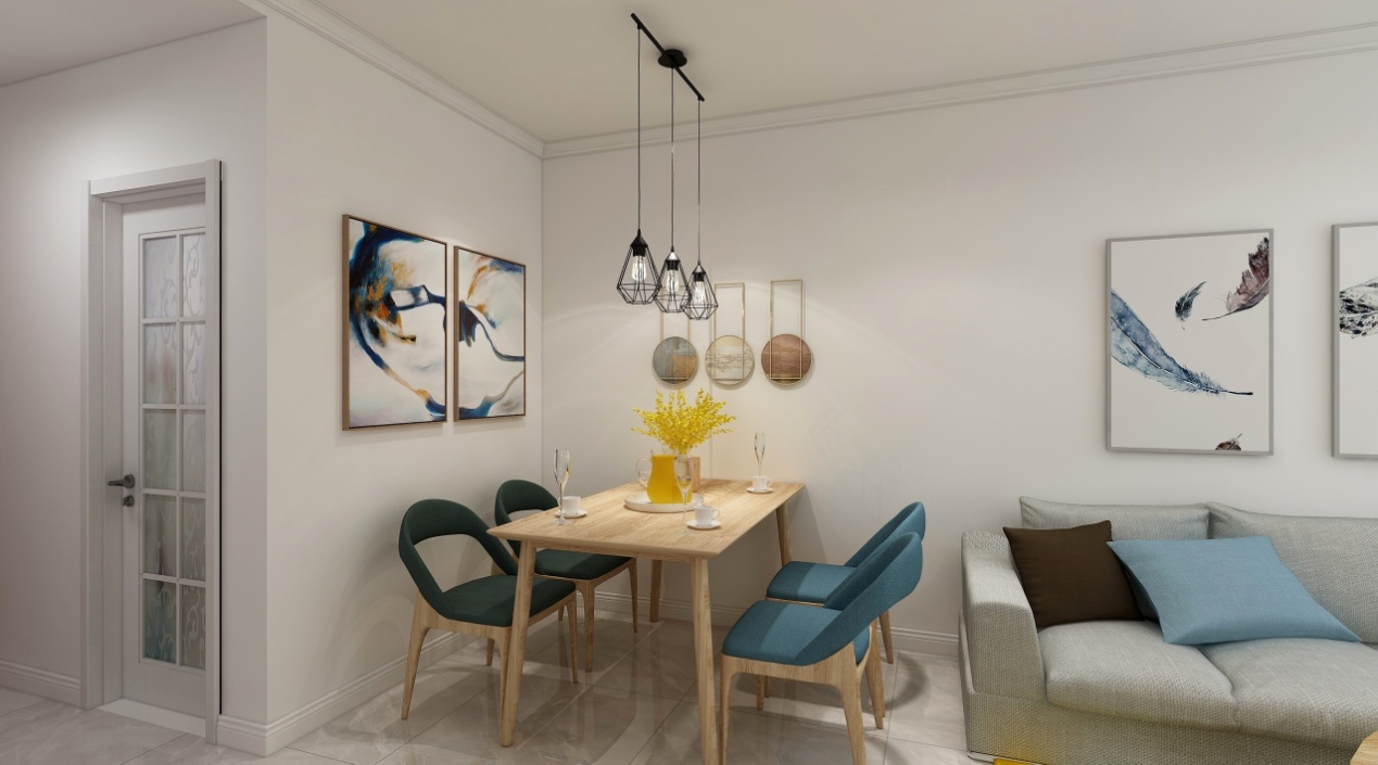 入門處先映入眼簾的是簡單的四人餐桌在墻壁上設(shè)計擺放北歐風(fēng)格的裝飾畫營造溫馨浪漫的氛圍。開放式布局營造空間通透感,用餐區(qū)域充滿北歐風(fēng)格的簡約美。精心設(shè)計的玄關(guān)加上挑選的美物,讓玄關(guān)換鞋也有了儀式感。大面積白色儲物柜,干凈,耐用不會顯得擁堵。