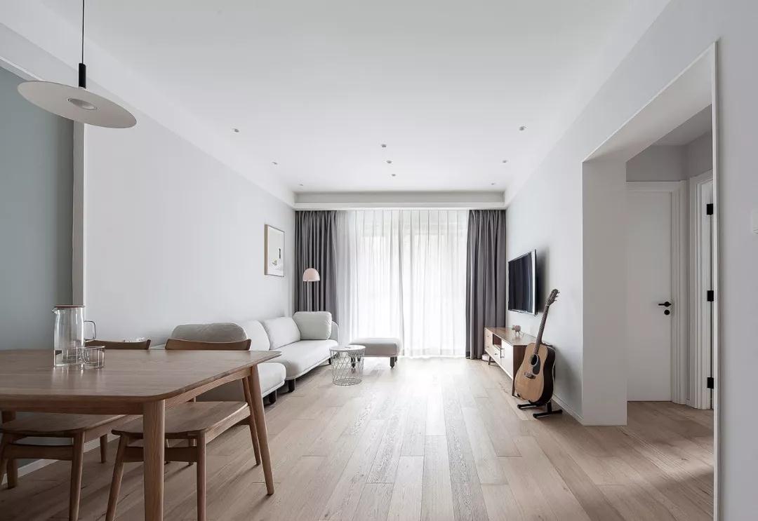 墻面沒(méi)有過(guò)多的裝飾,整屋都使用了木地板通鋪,觸感溫潤(rùn),自然美觀。