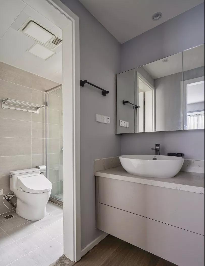 衛(wèi)生間墻面滿鋪瓷磚,美縫勾勒線條層次。干濕分離的設(shè)計(jì),也保證了耐用性和安全性。