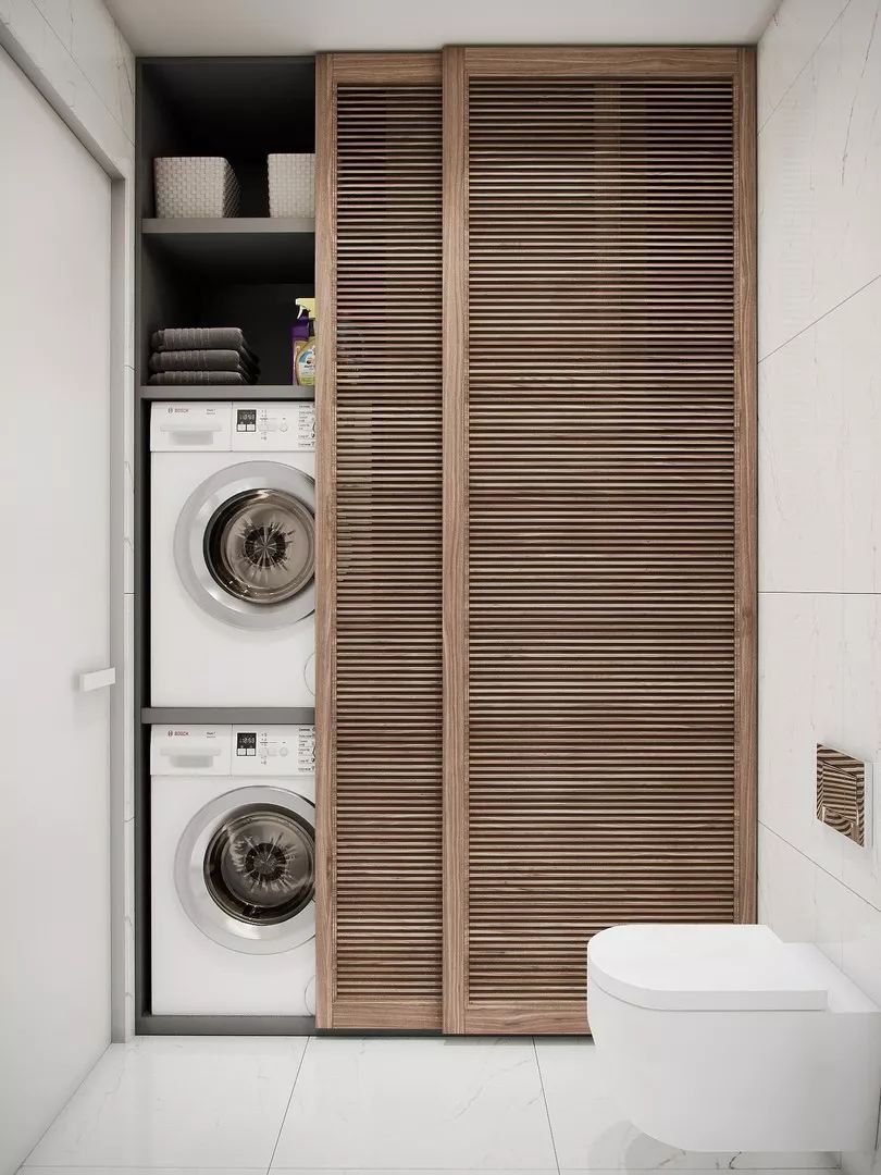 將洗衣機(jī)的收納柜,裝上折疊門或推拉門也可以讓洗衣機(jī)壽命更長~